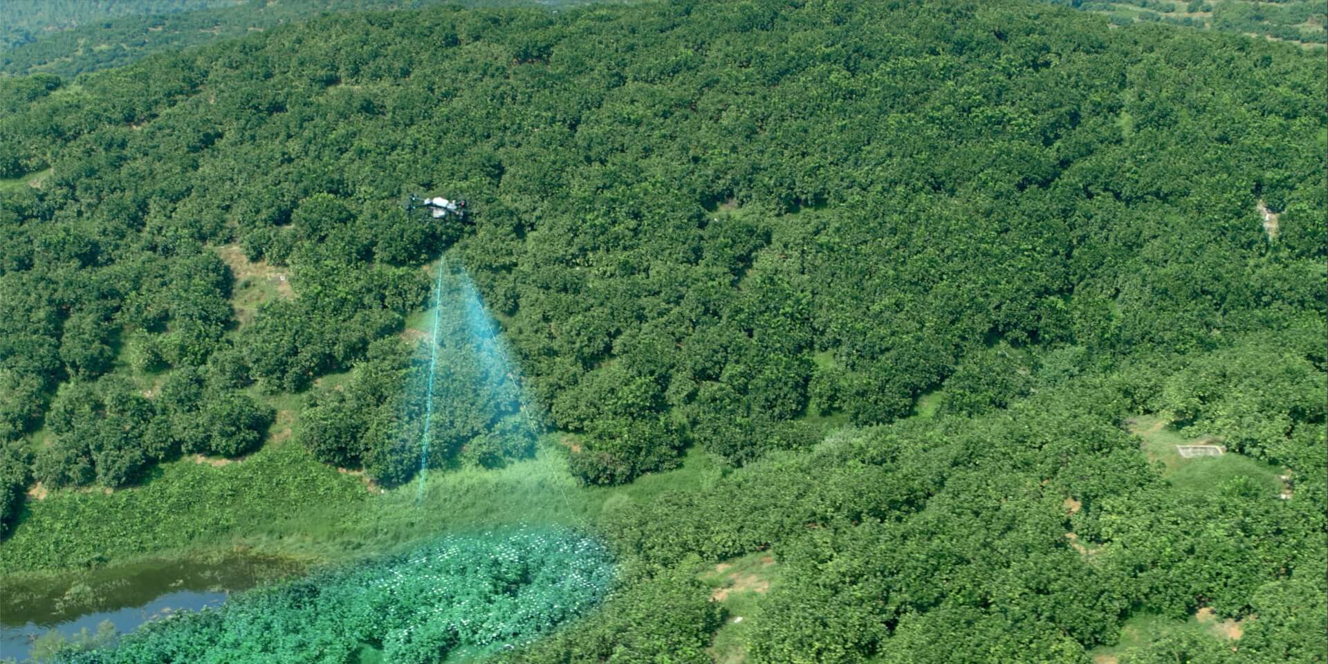 The system detects land boundaries and obstacles automatically, for quicker planning of flight routes over farmland and hilly orchards.